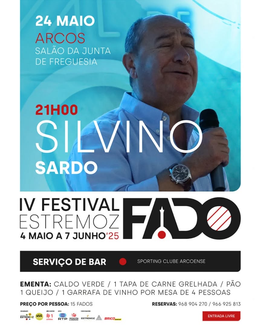 No próximo dia 24 de maio, sábado, o Festival de Fado de Estremoz regressa à Freguesia de Arcos.